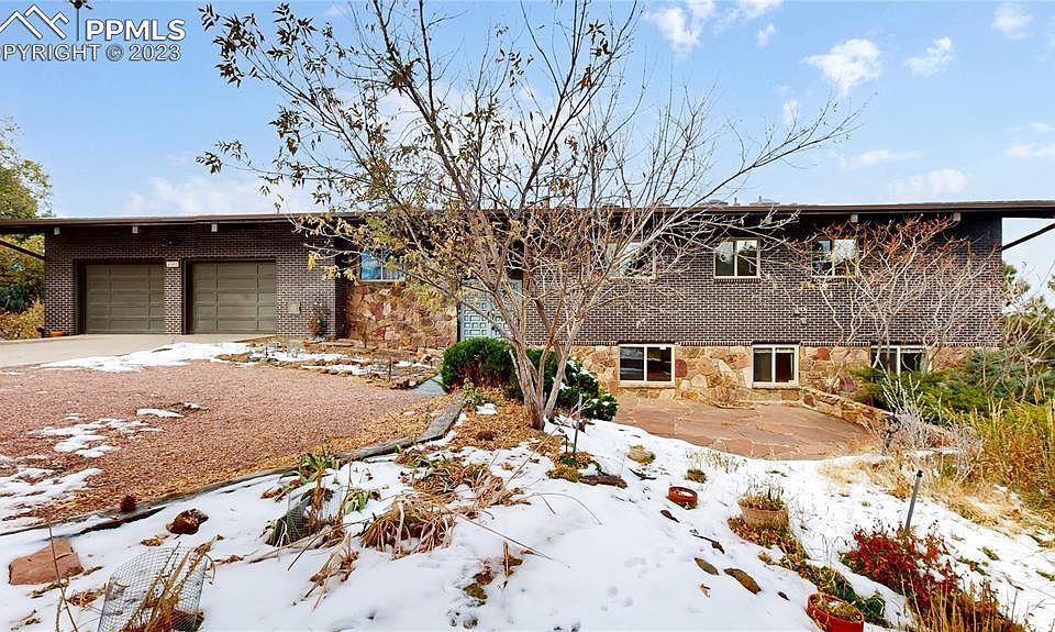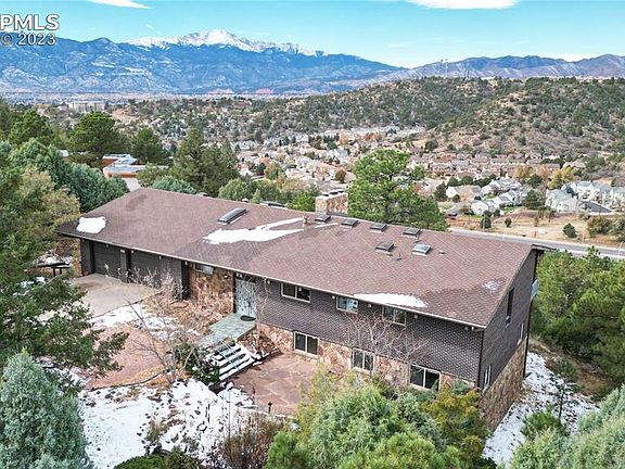 Here's your rare opportunity to own a true Mid Century Modern masterpiece built by the celebrated and renowned architect/builder and designer, Don Price. He designed just over 100 homes in Colorado Springs, which includes his final project and personal home, the famous Circular Home in Skyway. This home built exemplifies everything the theory of modernism is and was. This one-owner, original custom home is located on a ridge-top cul-de-sac, in a coveted custom neighborhood, offering spectacular Pikes Peak, city light, and Garden of the Gods views, on almost an acre backing to city parkland. Privacy abounds, mature landscaping, private courtyard and a charming patio, all surrounded by greenery. This home was well ahead of its time with high vaults, beamed ceilings, and lovely signature slate floors. All the woodwork, including cabinets, shelving and storage in the house is original and custom made on site solely for this home. There are 2 moss-rock fireplaces one on each level for cozy winter nights. The efficient kitchen is graced with leather-matte granite counter tops and lots of charm! The spectacular views will mesmerize you from the dining room, sun room, master bedrooms, decks and even the lower level. The sunroom has new carpet and is heated living space not reflected in the square footage, which adds 136 square feet to the square footage shown. Enjoy the fresh air from the decks, one off the primary bedroom that take advantage of the spectacular views off the dining room and master bedroom. With some trimming, you'll open up the views even more for one of the best views in town. Notice the front rock privacy wall. shielding the two patio areas from view. The landscaping is mostly low-care, low water natural growth. The great N/E location is easy access to shopping, I-25 and more. If you are looking for a one-of-a-kind home to put your stamp on, this is it! Don't wait to see it.