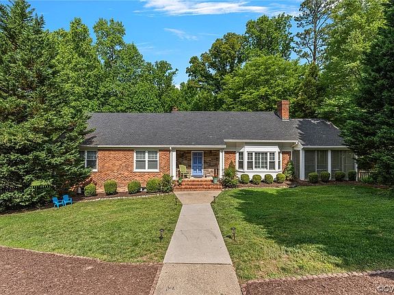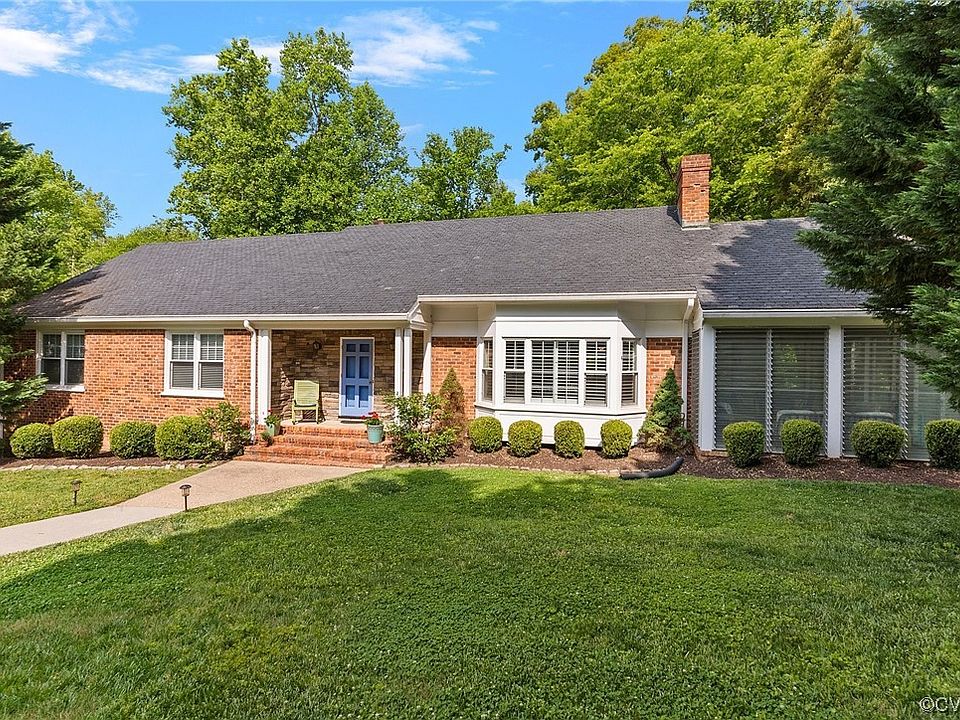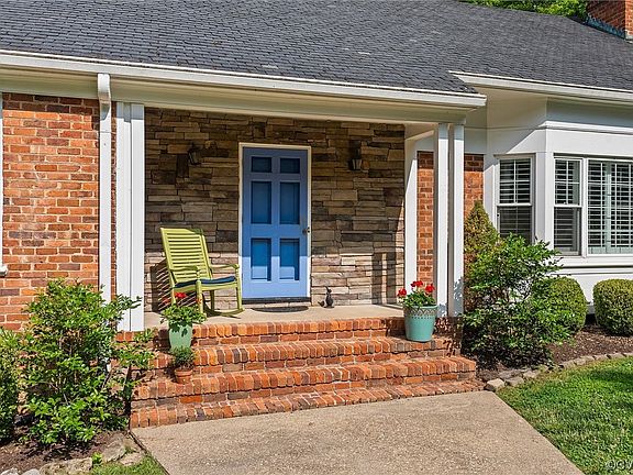 Welcome to this 4 bedroom, 3.5 bath Stratford Hills classic brick and slate home with a walkout basement! Nestled in one of Richmond's favorite neighborhoods and close to the James River, this home is sure to captivate with its impressive features and inviting atmosphere. Once inside, you'll find a thoughtfully designed floor plan offering ample spaces for comfortable living. The first floor features living room with brick fireplace and bay window, dining room, refreshed kitchen with granite counters, gas cooking and new built-in breakfast nook and pantry. Adjoining sun room could easily be finished for more living space! The main level bedroom wing features a spacious primary bedroom with en suite and two additional bedrooms and a hall bath. Upstairs is a private bedroom and bath retreat and the 800+ sf walk-in attic provides endless possibilities for adding living spaces. On the lower level, you'll find an expansive family room with a wet bar with butcher block counters, half bath, laundry facilities and a craft/exercise room that walks out to the private patio. Just minutes from Huguenot Flatwater Park for all kinds of River fun!