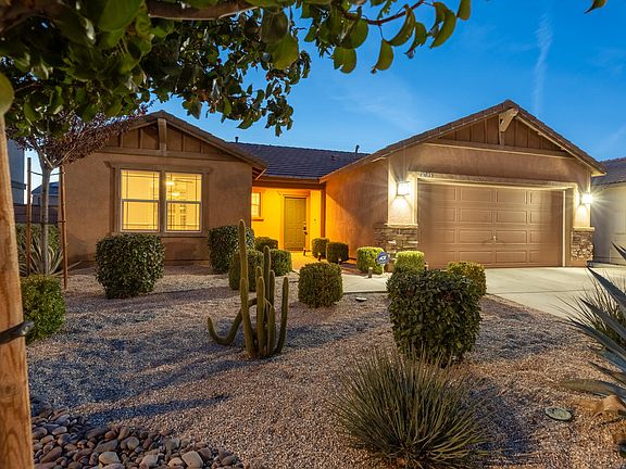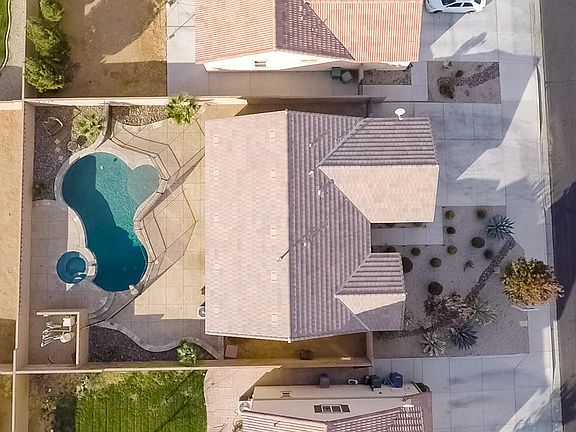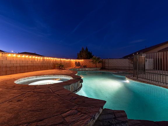 This bright, modern 3 bed, 2 bath home features granite countertops, hardwood floors throughout the entire home, ceiling fans in every room, and eco-friendly upgrades, like double paned windows and light dimmers. Bedrooms have custom wainscoting and chair rail with floor to ceiling mirrored wardrobe closets. The spacious master suite boasts a walk-in closet with custom shelving to maximize organization. The backyard features an oversized in-ground pool and spa as well stamped and colored concrete, tropical landscape, and a dog run. The front yard embraces drought friendly desertscape with a driveway that fits three cars. This house is a peaceful desert oasis and an entertainer's paradise.
