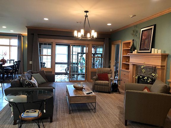 Ready to move in twinhome! 2 bedroms 2 full bathes ...Family room could easily be 3rd bedroom by adding a closet. Heated tile floors, 4 season porch, custom counter heights with double sinks. 3 zones for heat. Wired for surround sound, air exchanger, vaulted ceilings in bdrms, crown molding, Maple cabinets, sprinkler system, granite countertops, soft close cabinets & finished garage with floor drain. Plus a clubhouse with a fitness room