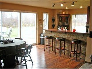 This beautiful country setting of over 5 acres features rolling hills and a private backyard, the custom built home has a 2 tier deck and a patio off the lower level bar room. Inside is an open concept living room, dining room and kitchen with great views to the west. It s a split bedroom floor plan that has a master bedroom and bath with a whirlpool tub. Have it all, 3484 sq. ft. 5 bedrooms, 3 baths and lots of storage space. Less than 15 minutes from Green Bay. $223, 900.