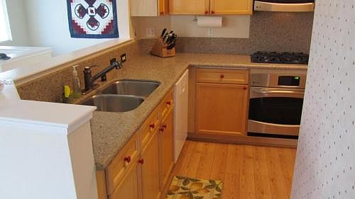 Diablo Ridge at Oakhurst Country Club! Rarely Available! Single story unit with views of hills and valley! Updated kitchen boasts gorgeous slab "Cambria" counters, tons of maple cabinets. Living room with wood burning fireplace and balcony with views!. Inside laundry, plus 1 car attached & 1 car detached garage! Secondary bedroom with views and mirror closet doors. Spacious master with over-sized soaking tub/shower with enclosure and a walk-in closet! Walk to community pool! Carefree living!