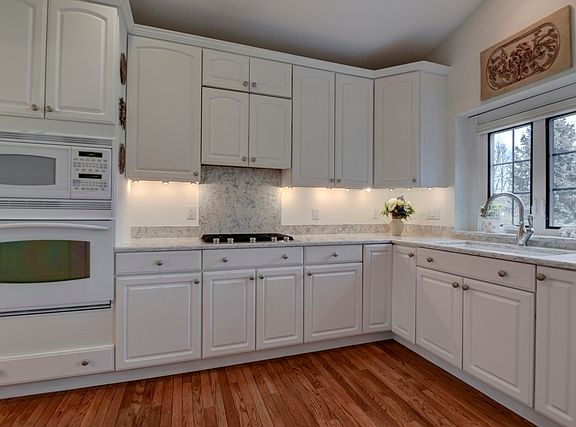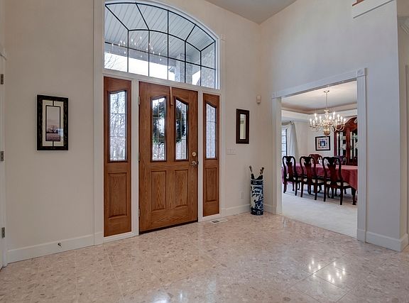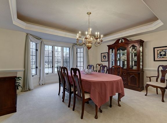 Astonishing home with soaring 2-story entry with curved staircase. Formal living room across from the expansive dining room with tray-lit ceiling. Extra tall family room with sheets of windows allowing the sunshine in and overlooking the park-like backyard adjoining the walking trail. Remodeled Gourmet kitchen with New Quartz counters and back splash,loads of cabinets and counter space connected to the guests in the breakfast nook overlooking meadow. 1st floor Master suite with sitting area, whirlpool tub and free standing glass shower. Sliding doors over see the beautiful backyard. Upstairs bedrooms have one with private bath and the other 2 with Jack and Jill bath. Don't miss the finished basement with a family room, fireplace, full bath and additional flex rooms.