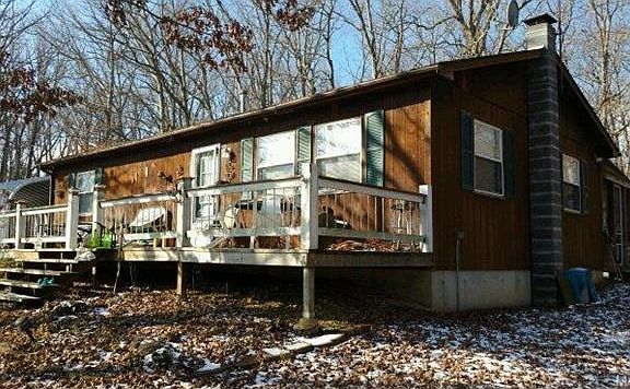 WEEKEND GETAWAY.... Here is the perfect place to relax and unwind from the hustle and bustle of your busy active life. Pull up a chair on your front porch and look out to the beautiful one acre stocked lake. Twelve acres is all yours to explore and love. Peace and serenity abounds. Watch the sunrise and the sunset while enjoying your cup of coffee or glass of wine. Furnishings in the home stay with the purchase. A 30 X 20 utility shed is there to store your treasures. The home features a wood-burning stove in the living room to warm your tootsies after hiking or a day of fishing in the lake.
