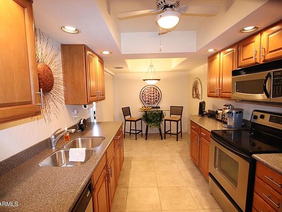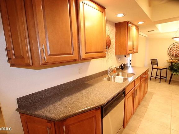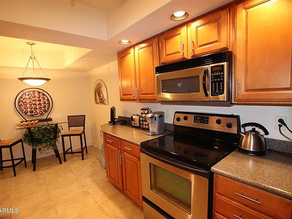 Situated in one of the most desirable locations within the entire community, this beautiful fully furnished ground floor, two bedroom two bathroom condo features two patios with gorgeous golf course and mountain views. Close proximity to the largest of the five pools and spas in the complex. This two bedroom two bathroom condo is perfectly appointed and meticulously maintained throughout. Updated with new cabinets and stainless steel appliances. Fully furnished as pictured with fully stocked kitchen as well. Vacation rental ready with towels and linens, just bring your suitcase! Queen bed in each bedroom. Rent includes water, trash, sewer and electric (capped at $125 per month). WiFi also provided by owner. Anasazi village is a beautiful gated community located across the street from Paradise Valley mall and features five pools and hot tubs, easy access to walking paths along the Stone Creek Golf Course and an updated gym with new equipment. Safe and quiet, you couldn't ask for anything more! Available until Dec 1 Fully furnished two bedroom two bath ground floor condo. Owner pays for utilities -electric (capped at $125 a month), water, trash, sewer and WiFi. One covered parking space included with the condo super close to your front door. Small dogs are considered, must be under 20 pounds per HOA regulations. $2,400.00 per month and is available until December 1, 2025.