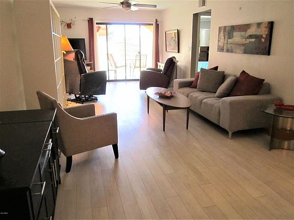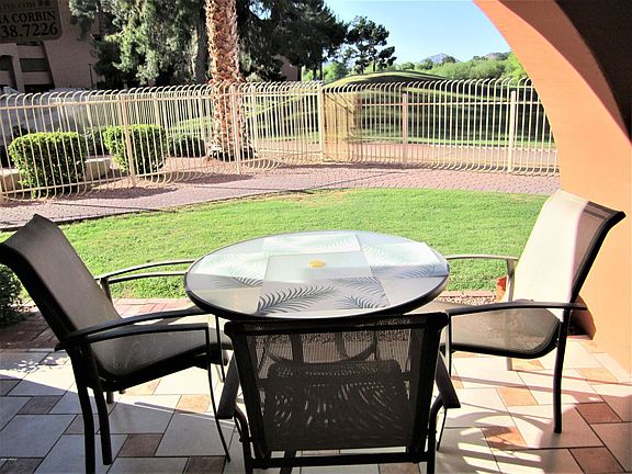 AMAZING VIEWS - GOLF COURSE, MOUNTAINS AND POOL JUST STEPS AWAY. BEAUTIFULLY UPDATED, QUIET CONDO INCLUDES SLEEK LIGHT ASH LOOK CABINETRY - EXTRA DEEP DRAWERS, LAZY SUSAN, SEAMLESS SINK, ETC. MOVABLE ISLAND OFFERS MORE STORAGE AND COUNTER SPACE. STAINLESS APPLIANCES AND LAMINATE FLOORING COMPLETE THE LOOK. RENO FOR BED/BATH ENTRY CREATES PRIVACY. BATHROOM FEATURES MODERN, RAISED DOUBLE VANITY AND WALK IN TILED SHOWER. MIRRORED CLOSET, CEILING FAN, WALK IN CLOSET AND ENTRY TO PATIO CONTRIBUTE TO SPACIOUS BEDROOM AMBIANCE. LIVING ROOM VIEW TRANSPORTS YOU TO THE BEAUTY BEYOND THE PATIO. BBQ AND PARKING SPACE ARE CONVENIENTLY CLOSE. ANASAZI OFFERS 5 POOLS/SPAS, 22+ ACRES OF GREENERY, PATHS AND A FABULOUS CACTUS GARDEN FOR RELAXATION. CLUBHOUSE WITH 2 CLUB ROOMS, FITNESS CENTER.