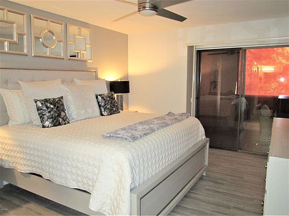 STUNNING, CASUALLY ELEGANT 2 BEDROOM UNIT - COMPLETELY REMODELED TO PERFECTION! SOFT GRAYS AND NEUTRAL PALLET CELEBRATE SPLASHES OF COLOR. TILE FLOORING, GRANITE COUNTERS, TEXTURED IVORY BACKSPLASH, EXTENDED CUSTOM CABINETRY WITH DEEP DRAWERS, WINE COOLER,CONTEMPORARY CEILING FANS, STAINLESS STEEL THROUGHOUT. HUNTER DOUGLAS SHADES, RECESSED LIGHTING AND QUALITY HANS GROHE SOLID SS FAUCETS, EMTEK HARDWARE ADORN THIS UPSCALE CONDO. ANASAZI LOCATION IS CENTRAL TO SHOPPING (TARGET, COSTCO, PV MALL), RESTAURANTS AND SKY HARBOR. MORE THAN 22 ACRES OF GREENERY, WALKING PATHS, A LOVELY CACTUS GARDEN, CLUBHOUSE WITH 2 MEETING ROOMS, FITNESS CENTER, 5 POOLS AND SPAS NESTLED BESIDE STONECREEK GOLF CLUB. GREAT PARKING SPACE CLOSE TO UNIT-369. SEE DOCS TAB FOR UPDATE LIST.