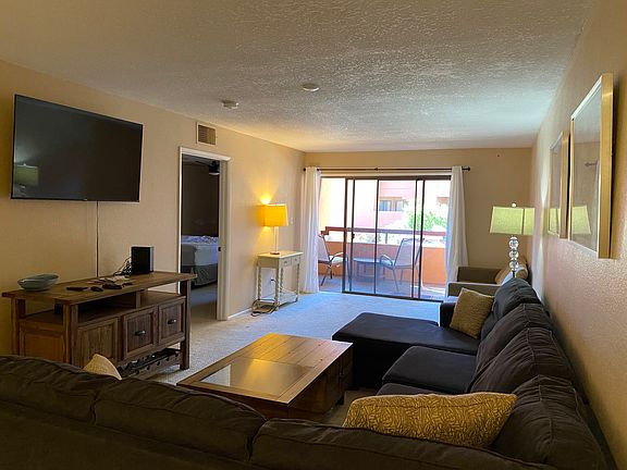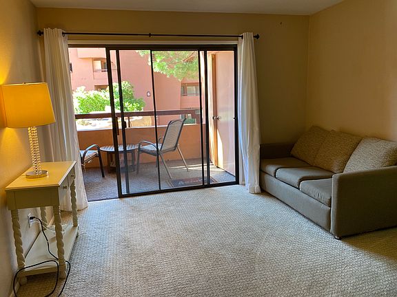 Available September 10th. This relaxing 1 bedroom 1 bathing condo is fully furnished as shown, I can leave it vacation rental ready with linens and fully stocked kitchen. Rent includes all furnishings, water/sewer/trash and one covered parking spot located right next to the elevator and stairs. Lease available at $1,600 per month, prefer a year lease but I am flexible. Small dogs okay, must be under 25 pounds per HOA, two max This beautiful one bedroom one bathroom condo overlooks one of the complexes five pools and spas, located on the second floor of a four-story building complete with elevator in the Anasazi gated condominium complex. It truly is the perfect location! Just a two minute walk to shops and restaurants including Paradise Valley Mall, Target and Costco, a five minute drive to Keirland Commons and the Scottsdale Quarter and a ten minute drive to Old Town Scottsdale to experience restaurants, shops, art galleries and festivals. Enjoy your morning cup of coffee or an evening drink on your private patio. The complex is also adjacent to Stonecreek golf course and includes a huge workout facility and five pools and hot tubs. Everything you need for your personal living or entertaining is included in the full kitchen including full sized oven and four burner electric cooktop, refrigerator, freezer, microwave and dishwasher. Full sized washer and dryer in unit as well. Bedroom has a king sized bed, side table, dresser and desk. Living room has a large spacious sectional couch and a separate sitting area by the patio as well. Two minute walk to Target, new paradise valley mall restaurants and shops, or quick two minute drive to grocery stores. Flexible on lease terms. Fully furnished as pictured. Rent includes water, sewer, trash and one covered parking spot right next to the building.