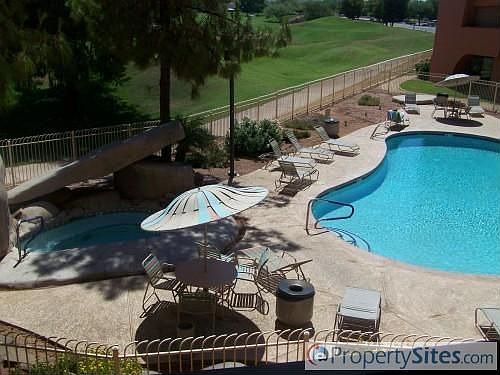 ON the GOLF COURSE overlooking Pool, Mountians and gorgeous sunsets located in the beautiful Anasazi Complex featuring 22 lushly manicured acres with walking paths, also walking paths on the golf course, 5 pools 5 spas for privacy or partying whatever mood you are in. Clubhouse with 2 big screen TV's pool tables and Resident activities,workout facility, Resident media center with wifi. beautiful rock formation waterfalls throughout the complex. Take advantage of our low price on the exceptional buy. Walk across the street to Paradise Valley Mall with a movie theater, library, Restuarants galore and shopping, shopping shopping. EZ access to Freeway 51, airport and easy weekend getaways.