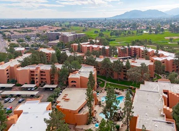 VERY QUIET TOP FLOOR LOCATION AWAITING YOUR UPDATES, OVERLOOKING OUR LOVELY CACTUS GARDEN FROM SOUTH FACING BALCONY AND A HINT OF THE GOLF COURSE FROM THE WEST BALCONY. SPLIT FLOOR PLAN, UPDATED PRIMARY BATH, LOADS OF STORAGE , SS APPLIANCES, TILE THROUGHOUT + FULL SIZE W&D. POPULAR BUILDING WITHIN THE COMPLEX ANASAZI BOASTS OVER 22 ACRES OF LUSH GRASS AND SCENIC WALKING PATHS, PERFECT FOR LEISURELY STROLLS. THE COMMUNITY FEATURES FIVE POOLS AND SPAS, A CLUBHOUSE WITH TWO ENTERTAINMENT ROOMS, WI-FI, A FITNESS CENTER, AND A VARIETY OF FUN ACTIVITIES TO ENJOY. THE SURROUNDING AREA HOSTS SHOPPING AND RESTAURANTS WITHIN WALKING DISTANCE, INCLUDING COSTCO, TARGET, AND SPROUTS. ADDITIONALLY, THE STONE CREEK GOLF CLUB BORDERS THE COMPLEX, TRULY YOU ARE SURROUNDED BY NATURAL BEAUTY!