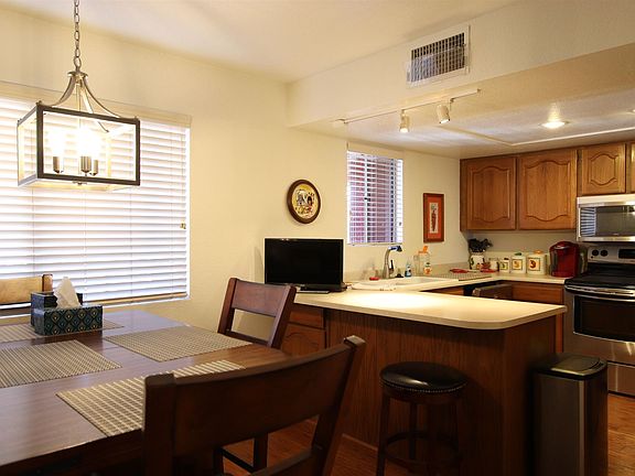 Situated on the 9th fairway of Stone Creek Golf course, this top floor, turn key, beautifully furnished one bedroom condo offers incredible peace and quiet and incredible golf course and mountain views. Balcony off of living room and master bedroom is a perfect spot for watching golfers or our amazing Arizona sunsets. Just steps from your condo is one of five community pools and a pedestrian gate directly to golf course.