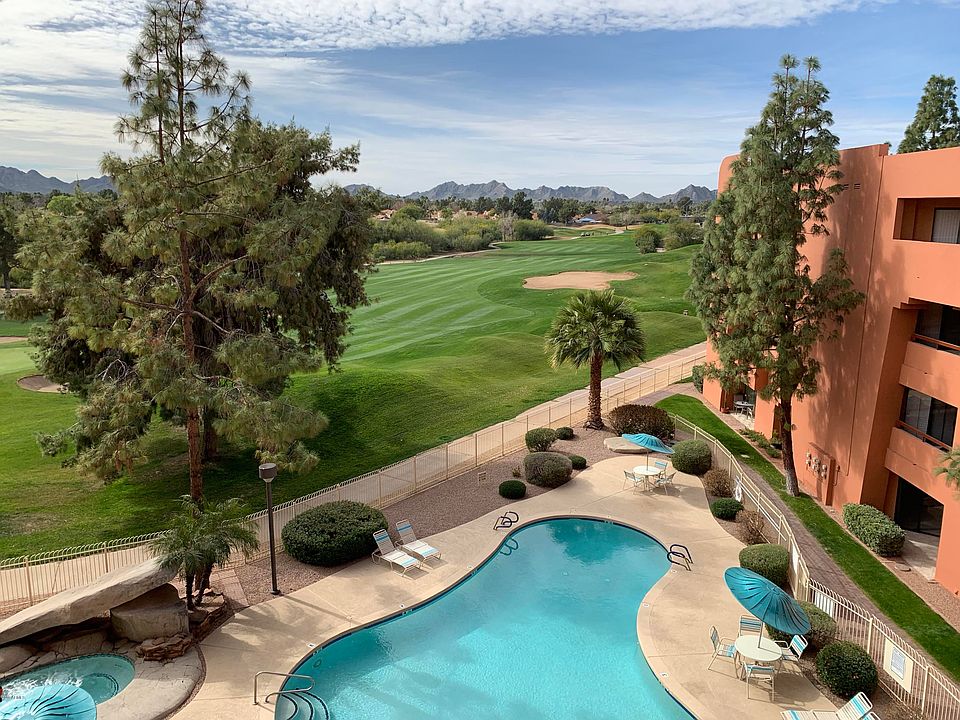 Rare opportunity to own a Premium 2/2 condo with tons of upgrades in Anasazi Village! This top floor end unit won't last long! Gorgeous mountain views and panoramic balcony sunsets over the expansive greens of Stone Creek Golf Course await in a vibrant active private community with multiple heated pools, walking paths, Clubhouse, Fitness Center, Billiard room and more! Whole condo had upgrades in 2017 including quality SS appliances, Bosch W&D, Whole house water purification, new granite kitchen and baths, shower surrounds, carpet, and paint! Close to 51 & 101 freeways, shopping, & dining! Situated on over 22 perfectly manicured acres, Anasazi Village offers five beautiful pools, four that are heated, large fitness center, billiard room, upstairs and downstairs club rooms as well as business center available for resident's use . Many resident activities are planned throughout the year. Anasazi Village is situated along Stone Creek Golf Course and a public pathway for endless walking and cycling trails. The community is also within easy walking distance to many restaurants and stores and a short drive to freeways, airport and many city events and attractions.