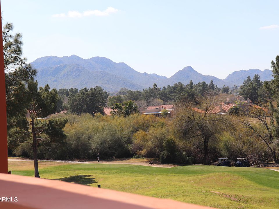 INCREDIBLE VIEWS of golf course and mountains from this TOP FLOOR condo (elevator, of course). Your oversized balcony can easily accommodate a larger table and four chairs with room to spare. Just a short walk to pools and all the clubhouse amenities. Anasazi Village amenities include five resort pools each with its own spa, a clubhouse with party room, a billiard and card room, plus a fitness and business center.