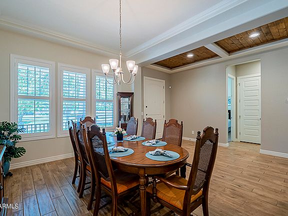 Beautiful doesn't describe this single level home located on a corner lot in the desirable Elliot Groves at Morrison Ranch. 3258 sf, 4 bedrooms, 3 baths, den/office, & bonus room! Exquisite touches throughout w/elegant wood-paneled ceiling entry, wood-like tile floors, shutters, formal dining, greatroom w/extended living room, & a HUGE laundry/bonus room for an in-home gym. Gorgeous granite counters, upscale cabinets, stone backsplash, oversized breakfast bar island, gas cooktop, dbl ovens & SS appliances. The split master suite has a large walk-in closet, raised vanity, soaking tub, & walk-in shower. All bedrooms are spacious and have walk-in closets. The well-designed backyard offers peace and serenity with a fountain, mature landscaping, & paved ramada area w/built-in cooktop burner