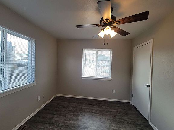 This 2-bedroom, 1-bathroom unit on Ericson Drive and Hampton S is ideal for those seeking convenient living near military installations. The unit features modern updates including neutral-toned paint, ample storage, a washer and dryer in-unit, an eat-in kitchen, and ceiling fans. Flooring consists of upgraded laminate and carpet throughout. Enjoy the xeriscape backyard for low-maintenance outdoor living. Unreserved parking is available in front of the building, with additional street parking nearby. Location Highlights: Situated in School District 11 and with easy access to the freeway, this home is perfect for commuters. Nearby attractions include military installations, Broadmoor, Cheyenne Mountain Resort & State Park, Cheyenne Meadows, Quail Lake Park, Cheyenne Mountain Zoo, Seven Falls, Old Colorado City, Downtown, and more. Features: Ceiling fans Stainless steel appliances Washer & dryer in-unit Laminate and carpet flooring Shared fenced backyard Unreserved parking lot Utilities: Flat Rate: $125/month for water, sewer, and trash, plus a $5.00/month administrative processing fee charged by the Lessor. Electric & Gas: Tenant must set up accounts with Colorado Springs Utilities for electric and gas and pay directly for the duration of the lease. Account numbers must be provided to the property management at lease signing. Move-In Special: Military personnel receive half off the application fee with valid military I.D. Pet Policy: Pets Allowed: 1 mature cat, 1 mature dog under 45lbs. Pet Deposit: $150 Pet Rent: $35/month per pet Smoking Policy: No smoking or marijuana permitted on the property. *Please note that this property has been virtually staged. The furnishings and decor shown are for illustrative purposes only. *Are you finding it difficult to come up with security deposit and first month's rent? Don't worry -- ask up how we can help!