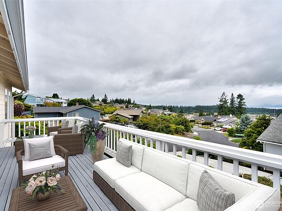 Experience spacious living in this inviting 4-bedroom, 3-bath home, available for the first time from its original owner. Main level features a vaulted great room that enhances natural light and openness, flowing seamlessly to a large deck—perfect for entertaining or enjoying stunning sunsets and boat traffic along the Channel. The lower level offers a cozy family room with a gas stove, two additional bed, utility room, and a shop/storage space. Comfort is ensured year-round with forced air heating and A/C. Outside, the sun-drenched yard invites gardening, recreation, or simple relaxation. Located in the desirable Clearidge community, known for its well-maintained homes and pride of ownership, this property is a rare opportunity. Don't miss