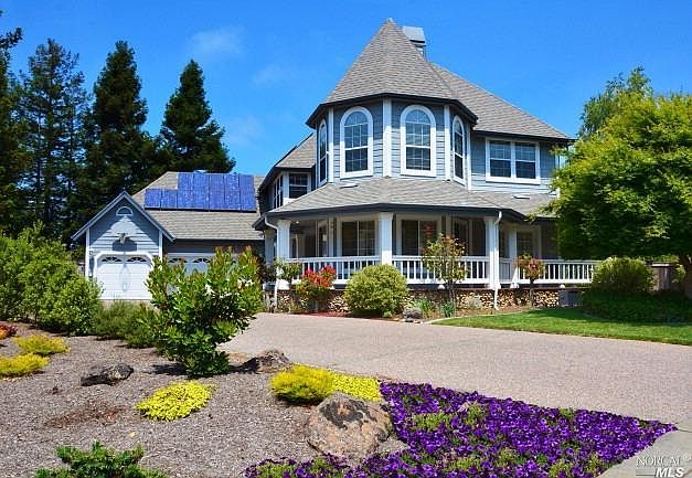 Fantastic modern day Victorian style home--loaded with conveniences. Vaulted ceilings, crown molding, beautiful fixtures & trim showcase open floor plan. Gourmet Kitchen with walk in pantry. Dining room opens to wrap around deck overlooking manicured grounds. Redwood trees provide a forest like setting while blooming plants/trees provide privacy. Sit on the rear deck overlooking the sparkling pool and Sonoma Mt views. 3 car garage and guest unit.