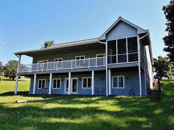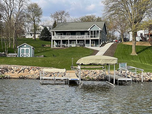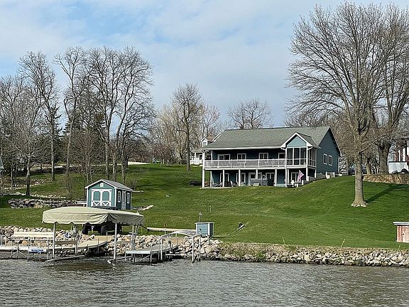 Gorgeous Lake views of the Main channel from this WATERFRONT HOME! *Enjoy cooking in this Gourmet Kitchen with 6 burner gas cooktop w/rangehood, built in oven , microwave, refrigerator (all in stainless steel). Large center island with lots of storage. Family room, dining area and half bath on main level. Master bedroom with office area, walk in closet. Nice master bath boasts double vanity, jetted bathtub and shower with wall & overhead jets. Maintenance free deck runs full length of home with a screened in area. Lower level has 3 Bedrooms and full bath. Rec room w/ kitchenette and family room area. LL also has radiant heat in floor as well as maintenance free deck. Large lawn with gentle slope to water. Fenced in area for pets. Approx 3328SF - total up and down. 4 car attached Garage; lots of room for boat storage.