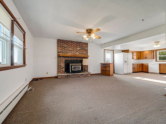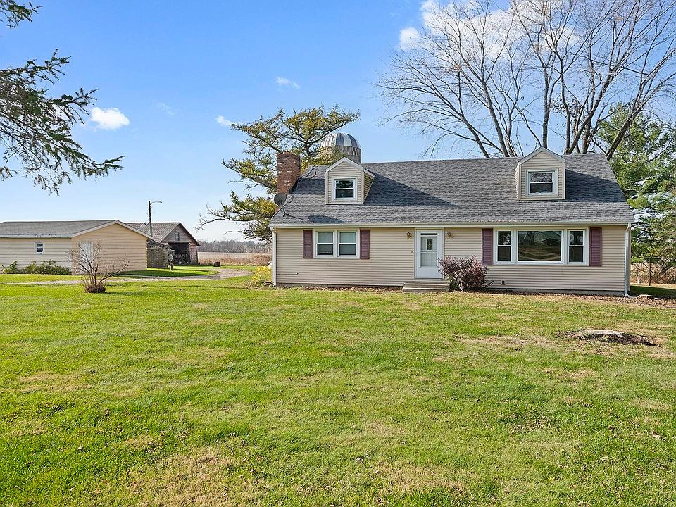 Country living! Enjoy the peace and quiet on this 5.5 acres in Winnebago school district. This one owner 2 story home has 4 bedrooms, 2 baths and a 2 car garage. Spacious kitchen open to the dining room with a brick fireplace & pellet/corn fireplace insert. Main level has a large family room, a bedroom and main bath with walk-in tile shower. Laundry room is also on main level (washer/dryer stay). Upstairs has 3 additional oversized bedrooms with hardwood floors and a bathroom with a cast iron tub. LL has a brick fireplace & the potential for a beautiful family room. Large deck on the back of house. 40x60 concrete slab to build a new shed on. 2 other outbuildings, 2 silos (not used), old brick milk house, flower garden, new roof 2023, water htr (LP) ‘19, GFA heat from LP on main level and electric heat upstairs. Window unit, Aprilaire, free internet with Aeroband for being on property, recently resurveyed this 5.5 acres from larger parcel. 197 additional acres available. Property sold AS-IS.
