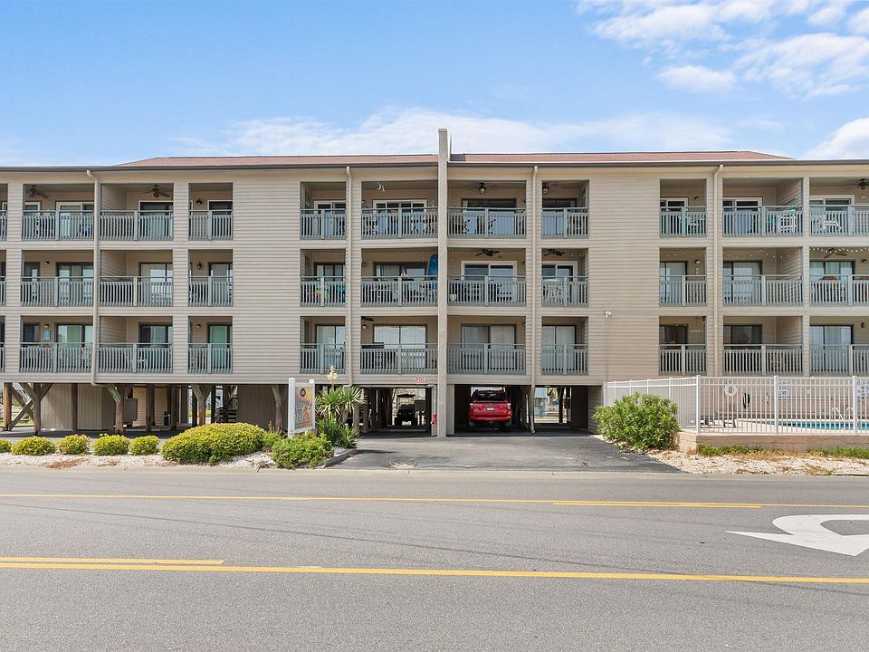 OWNER ALLOWED A GOLF CART! Introducing your next seaside sanctuary! Nestled just steps away from the pristine shores, this charming two-bedroom, two-bathroom first-floor condo offers the perfect blend of coastal living and investment potential. Located second row from the beach, this gem boasts a spacious balcony, inviting you to savor morning coffee with the soothing sounds of the ocean as your soundtrack. While this condo awaits your personal touch, its well-designed layout and prime location make it a canvas primed for transformation. Priced to sell, it presents an incredible opportunity to create your dream coastal retreat or to capitalize on its rental potential. Step inside to discover a fully equipped kitchen, ready to inspire culinary delights and beachside feasts. Laminate flooring graces the main living areas, offering both durability and easy maintenance, while plush carpeting in the bedrooms provides warmth and comfort after a day of seaside adventures. Whether you envision lazy beach days, sunset strolls, or entertaining guests against a backdrop of ocean breezes, this condo promises endless possibilities. Don't miss out on the chance to make your coastal dreams a reality—schedule a viewing today and unlock the potential of this beachside haven! Square footage is approximate and not guaranteed. Buyer is responsible for verification.