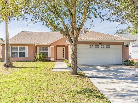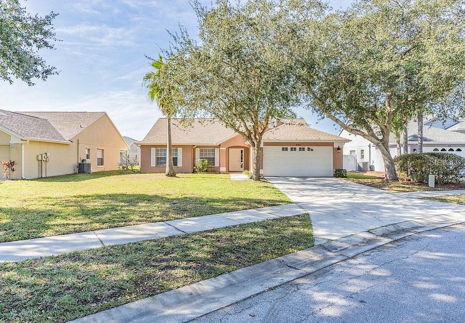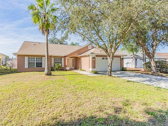 Lovely 3 bedroom, 2 bathroom single story home located in the community of Millpond Estates in New Port Richey. This home opens to a spacious living room featuring fresh, new carpet. To the right is your kitchen with laminate wood floors, stainless steel appliances, a breakfast nook and dining room. There is a laundry area in the kitchen as well as a large walk in pantry and entrance to the 2 car garage. The dining room opens to a closed-in patio with a door leading to the large back yard. On one side of the living room you will find the master bedroom with wood laminate floors, large walk in closet, and attached master bathroom with shower and dual sink vanity. On the other side of the living room are 2 additional bedrooms with wood laminate floors and a bathroom. This home is just a couple of blocks to the community clubhouse with a pool and close to Highway 54 where you can find plenty of dining and shopping options!