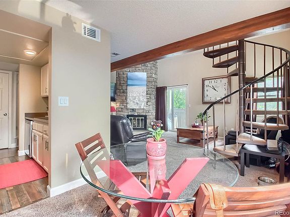 Spacious End Unit! 2 Bedroom, 2 Bathroom Condominium located within the Lakepointe Community. Bright end unit and open floor plan complement this homes comfort and livability featuring and inviting living room w/vaulted ceilings, sky light, ceiling fan, cozy fireplace w/stone surround and access to the covered outdoor balcony w/newer sliding glass door. Dining room w/built-in cabinetry for storage and pantry, kitchen w/stainless appliances, laundry and spacious Master Bedroom w/dual closets and en-suite full bathroom w/double vanity and updated lighting. Upstairs living area showcases the second bedroom which provides the opportunity for loft space or home office and features an en-suite full bathroom w/updated lighting and multiple closets for storage. Parking isn't an issue with this units 2 reserved - exclusive use parking spaces as well as an ample amount of off-street parking. The Lakepointe Community offers a private pool and is conveniently located close to I225, E-470, DIA, Chatfield State Park and Quincy Reservoir featuring miles of walking/biking trails, fishing and water activities.