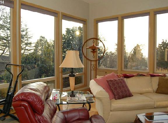 This home is an absolute jewel! Original maple parquet floors inlaid with walnut; upgraded gas fireplace with Italian marble trim. Original feel with energy saving updates. Lower level has high ceiling, waterproofed walls, plenty of room to expand. Oversized lot, gorgeous secluded back yard, big deck. Detached garage with opener. Pad for RV. Plenty of light throughout. 180 degree views for incredible sunsets! See it while you can!
