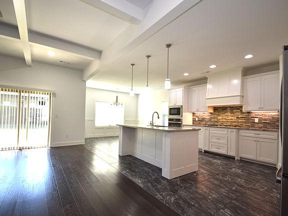 Walk-in closetDouble vanityCovered patioCorner lotOpen floor planPrivacy-fenced backyardTall beamed ceilings
