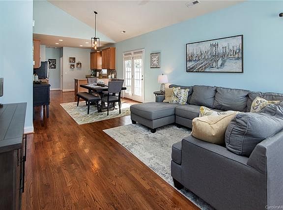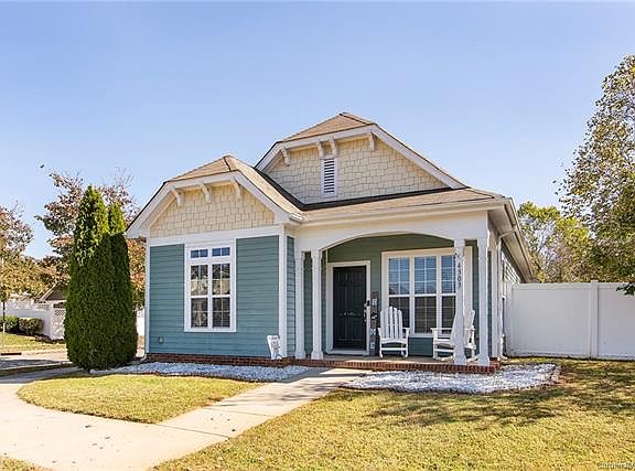 Cutest house on the block! Looking for total privacy with no house next to you but a small yard in a neighborhood - it does exist! This ranch home is at the end of the street with no houses beside and backs up to trees. You will love the open floorplan with wood flooring throughout the living areas - light and bright with a vaulted ceiling and lots of windows. Large living area and dining area! The kitchen has lots of cabinets, counter space, pretty granite, stainless steel appliances, and seller is leaving the refrigerator. Split floorplan perfect for guest with 2 bedrooms and full bath on the front and master bedroom in the back. Master bedroom has 3 closets and plenty of room for all your furniture. The master bathroom has 2 sink vanity and both bathroom have granite counters. The backyard is fenced with white vinyl privacy fence. So close to shopping and restaurants - won't last!
