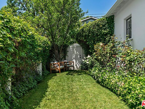 This emotional traditional home combines 1930s charm with the conveniences of modern day, all in a prime Studio City neighborhood in Carpenter School district. As you enter the walled courtyard covered with lush foliage and mature landscaping, you will find multiple areas for entertaining and play, including an oversized yard perfect for a soccer game, multiple sitting nooks for reading a book, a romantic porch off the kitchen for an early morning coffee, and a sweet hidden pea gravel and fruit tree garden. The living room and family room open to each other and the kitchen, and they feature French doors and a fireplace. The well-equipped kitchen has cement countertops, top-of-the-line appliances and a charming dining area that seats six. The three auxiliary bedrooms are all nicely sized and bright, and a large master bedroom has a walk-in closet, French doors that open to a patio, and a spa bath that features subway tile, marble, and designer hardware.