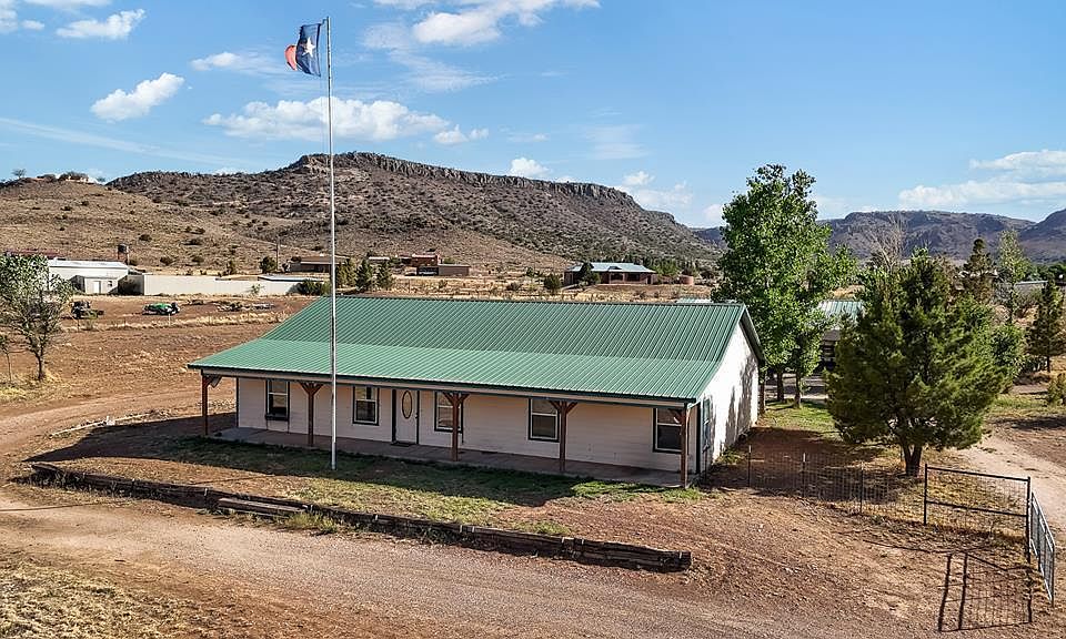 Wood-burning fireplaceOpen floor planViews of mountain bluffsFull fencingMature treesCovered front porchPrivate well
