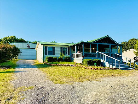 GREAT PRICE FOR A GREAT LAKE HOME! This tight-nit community brings the LAKE LIFE to a whole new level! Take a ride on the golf cart straight down to the BLUE WATER AREA of Lake Eufaula. This DOUBLE WIDE also includes a 30x50 shop that's great for all your lake/RV storage. The wood-burning fireplace & second living area make for a cozy weekend on the couch. Enjoy the covered front porch while entertaining all your friends and family! More pictures of the inside to come when the seller moves out!!