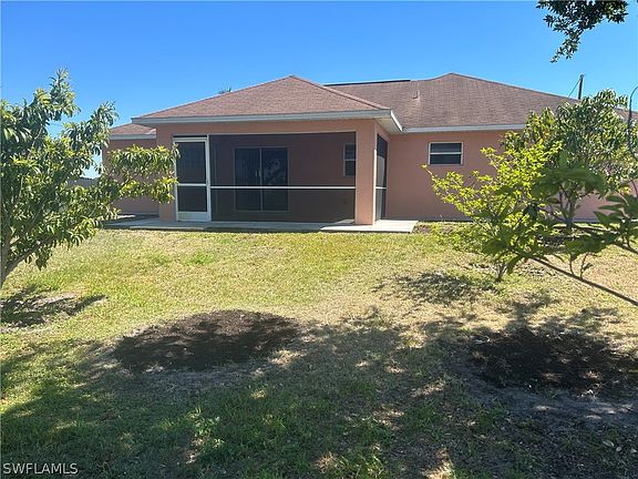 Lovely, three-bedroom two bath home in one of the most desirable areas of Lehigh Acres. Very easy access to SR 82 and Fort Myers with all of its major attractions, including the Boston Red Sox Spring Training Facility. Extra-large beautifully tiled lanai, for your morning coffee with a sunny view of mature Oak trees, fruit trees bearing fresh, sweet fruit, ready to pick from your own tropical oasis. The home boasts a five-foot chain-link fence for your privacy and pets to enjoy with no HOA fees. Enclosed two car garage with a newer water heater, shelving for your tools and an extra-long driveway for your guests and more. Upgrades include freshly painted exterior of the home, newer tile throughout the living, dining, hallways, guest bath and screened patio. No carpet here. The entire perimeter of the home has been upgraded with a cement walkway to keep your feet dry and hold the newer A/C and water equipment. This is a great starter home for a growing family and entertaining. Make your private showing appointment today!