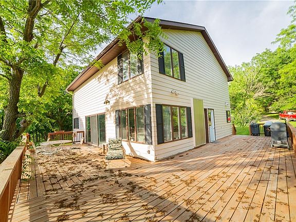 With over 3000 SQ FT, this home has a lot of potential. Open floor plan. 2 large bedrooms, bathroom, and loft area. 30 plus foot ceilings, overlooking the first floor. Open kitchen, dining, living area. Walk out basement with another living room space and another bathroom and tucked under garage. Large deck that wraps around 1/2 of the home. Located on the main channel on over an acre of land.