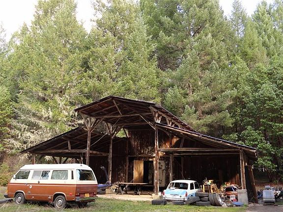The possibilities are endless ! This level 5.02 acre parcel has a single wide mobile with an addition and wooden pole awning with metal roof, there's a gambrel garage with sleep quarters on the top floor and a pole barn. All need some TLC but very livable. If you have a vision this place can be awesome. The mobile has one bedroom the addition has one bedroom with a loft space for 2 beds making this possibly a 4 bedroom. Both places have a deck and concrete patios. There is marketable timber surrounding the living areas which is located about the center of the property and gives you seclusion. You can make this your perfect mini farm and owner may carry.