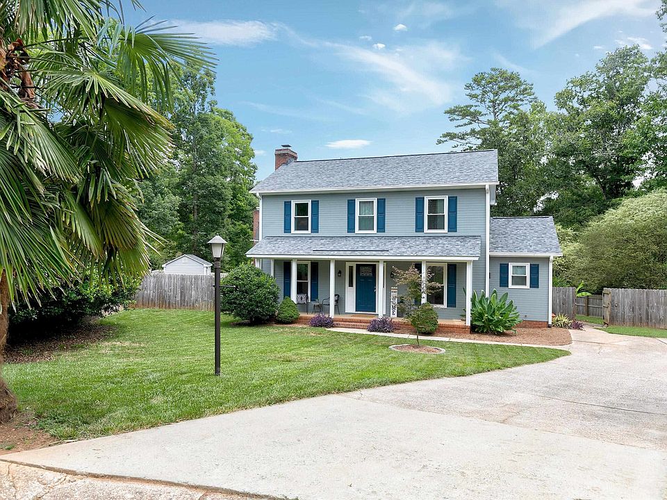 The best of both worlds awaits as you find this peaceful retreat surrounded by convenience in all directions! With nearby parks, restaurants & entertainment in seemingly every direction, hurry home to relax in your private oasis, tucked away at the end of a quiet, cul de sac street. Feel like entertaining? An open kitchen with bar and breakfast nook seating flows smoothly into the large living room highlighted by a cozy fireplace. Take the festivities outside and enjoy the two level deck, firepit patio & large fenced-in backyard surrounded by nature. Back inside, a separate dining room offers floorplan versatility as additional entertaining space or home office. Large primary suite & two guest bedrooms upstairs. See docs in MLS for a full list of recent upgrades & nearby amenities. Highlights include: new roof; all windows replaced; fresh exterior & interior paint; updated flooring; new stainless steel appliances; updated bathrooms, custom primary suite closets (2). Easy access to I-40/I-440/I-540 & short drives to downtown Raleigh, Research Triangle Park & RDU airport. 20 min to future Apple campus. Welcome home!