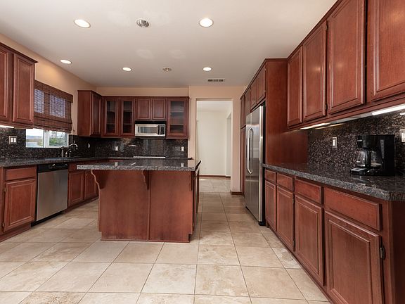 Westside Oasis! Enter through the gated court into the beautiful foyer with volume ceilings, stone medallion and cherry and wrought iron staircase. Travertine floors throughout the first floor and all bathrooms. The kitchen is truly the heart of this home and is a chef's delight with granite countertops, center island, cherry cabinets and stainless steel appliances just to name to a few. The breakfast nook leads to the family room with gorgeous travertine fireplace, surround sound speakers, large media niche and ceiling fan. Upstairs you will find a large loft and HUGE secondary bedrooms. The gorgeous master bedroom includes a retreat, coffered ceiling and French doors leading to a balcony over looking the hills. The spa-like master bath has a jetted tub, split vanities with travertine counters and sinks. The backyard is absolutely gorgeous with lush landscaping, spectacular pool and spa, and covered built-in outdoor kitchen. With all these amenities, you will certainly fall in love!