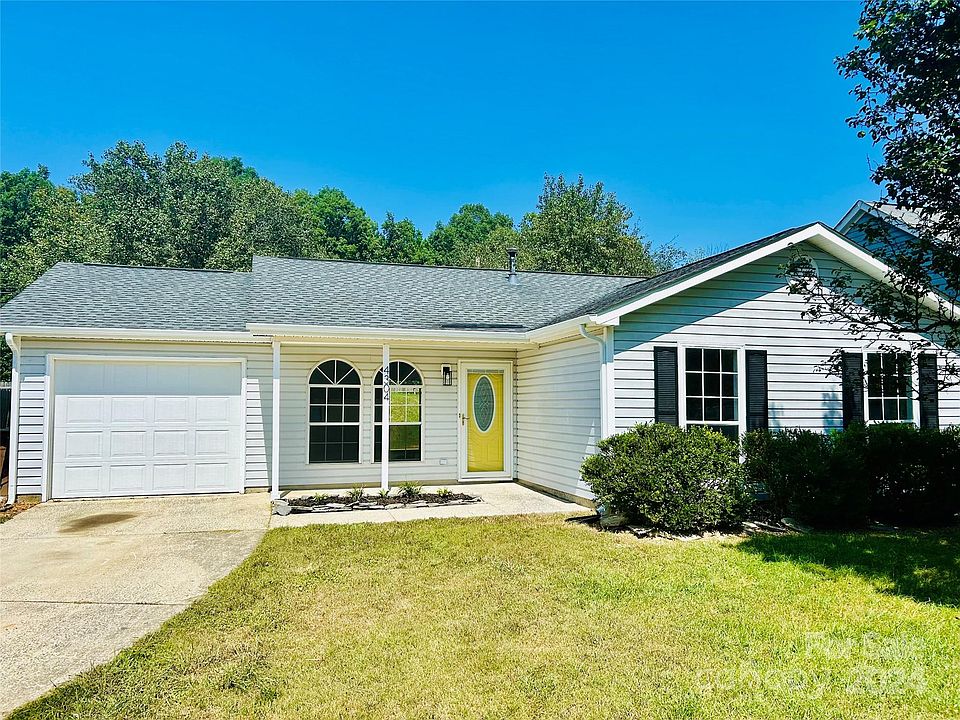 **Price Improvement! Fresh, bright, and ready for you! This charming 3 bedroom, 2 bathroom cul de sac ranch home in Indian Trail is modest and low maintenance. Vaulted ceilings elevate the space in the living, dining, and primary bedroom/bathroom areas. A stone feature wall and arched windows give character to the living room. This entire house has been freshly painted. Kitchen has new granite countertops, a deep single basin sink, freshly painted cabinets, new hardware, new dishwasher and matching stainless steel appliances. Updated LED lighting throughout. SmartCore-plank flooring has been newly installed in all rooms. New LVP flooring, dual flush toilets, and new fixtures in the bathrooms. HVAC was replaced in 2023 with a higher efficiency system, a Nest thermostat, and added attic insulation! New garage door. Brand new gutters. Termite coverage paid for 1 year. Great location convienent to shopping, highways, Terrys produce stand, Crooked Creek Park, and Sardis Elementary.