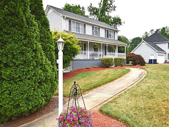 Enormous covered front porch & mature landscaping welcome you to this well maintained, move in ready 3BR home with convenient location to GSO, WS & Kernersville. New roof in 2019 (architectural shingles). Eat in kitchen w/ island & large case opening into DR allow for easy entertaining. LR w/ gas fireplace & access to deck. 3 bedrooms upstairs with upstairs laundry room too. Playroom or office in finished basement, w/ new carpet on basement steps. This charming home is a must see. See Agent Only Remarks.