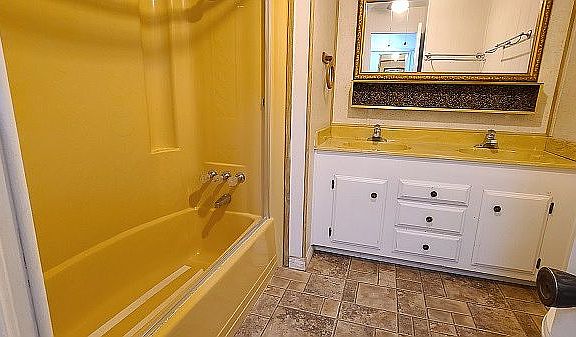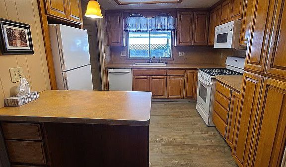 This is a 2 bedroom/2 bathroom home with new waterproof laminate in living/kitchen area and new carpeting in bedrooms. Kitchen features a dishwasher, gas stove and refrigerator. The guest bathroom has a nice double shower. The master bath has double sinks and a tub/shower. Laundry room includes washer and dryer. Outside features new rock and a great patio. Workshop with electrical on carport side.