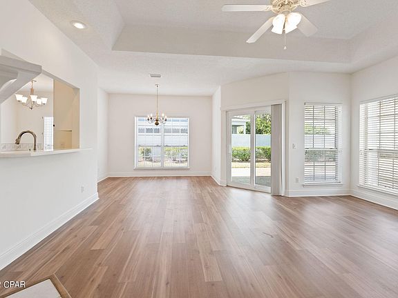 Rare Opportunity! Located in the gated community of Bay Point, Legend Place is a community of patio homes. These homes in Legend Place do not come on the market often and when they do, they sell quickly. This home offers 3 bedrooms, 2 full bathrooms, 2 car garage, and patios off both the main bedroom and gathering room. Enjoy your morning coffee or evening drinks on the covered stone patio. Forget yard work, as landscape maintenance is included in the quarterly HOA fee. The home boasts arched doorways and trey ceilings for an elegant feel. The large gathering room has lots of windows, a cozy gas fireplace, and connects to the dining room, and full service eat-in kitchen. Updates include vinyl plank flooring, new roof in 2019, new gas water heater, a/c compressor 2017, loop for water filtration, impact resistant doors, new kitchen double sink and powerful disposal installed in 2022. The primary suite includes trey ceiling with fan, walk in closet, full bathroom with double sinks and separate garden tub and shower. Two more roomy bedrooms are available with another full bath. Bay Point is a gated community with golf, tennis, a new marina, 24-hour security, and Bluegreen's Bayside Resort and Spa. Come enjoy the lifestyle!