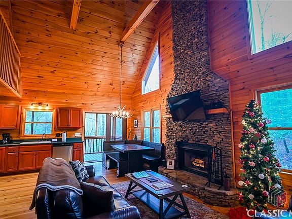 With over 400 ft on Little Fighting Town Creek, this 4 BR/3Ba home on 3 lots ( total 1.78 ac) is a SLICE OF PARADISE! Seller is installing new granite countertops in the kitchen. Enjoy your afternoons Trout fishing from the deck over the creek, use second deck for relaxing near the water or sit back and enjoy the restful sounds of the creek with your favorite beverage around the firepit, from the hot tub, or one of the two screened porches. This makes the perfect Full Time Residence or Vacation Home situated CLOSE to all the Blue Ridge area has to offer. Sitting between Blue Ridge and McCaysville you are only a short drive to White Water Sports, Antiquing, Visiting the Towns of Blue Ridge or McCaysville to enjoy one of the fabulous restaurants, Boating on Lake Blue Ridge or Hiking one of the many trails. . It's currently in a successful rental program and we ask that you view this property by making an appt. Do not drive down private drive and disturb vacationers as they have come prepared to completely enjoy this PIECE OF PARADISE. Furnishings other than pool table and hot tub,do not remain, but seller will consider offers for furniture.