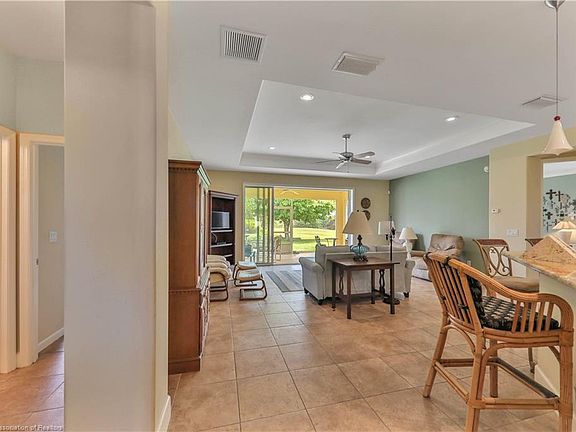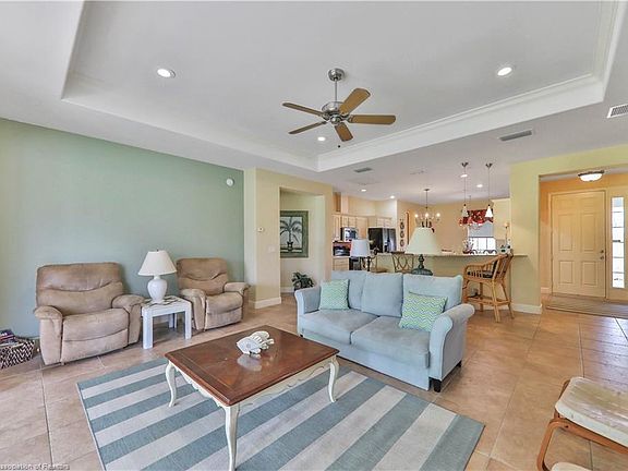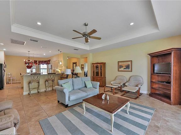 This beautiful, furnished 3 bedroom home overlooks Highlands Ridge's North Course hole # 17. The spacious living room with tray ceiling, opens onto the screen porch at the rear with golf course views and the large kitchen with dining area is positioned at the front of the home. A gorgeous granite top adorns the island and the breakfast bar, the counter tops are quartz. The master bathroom has dual vanities, a walk-in shower and 6x12 closet. The laundry room with its washer and dryer, also has a wash tub. A well for irrigation is installed, helping to keep your monthly water bill low. In addition to the monthly maintenance fee which includes grass cutting and the use of the community's amenities, excluding the golf courses for which fees apply, there are 2 small annual extras: HOA $25/year and $10/year Residents' Council. There are 2 swimming pools, hot tub, pickleball courts, tennis courts, shuffleboard, exercise room, library/computer room, additional activity rooms and a large hall where dances, pot lucks and other functions take place. There is always something going on. The North Course golf club offers lunches and the South Course is also open for dinner several nights a week and Sunday morning brunch. For the fishermen, there is direct access onto Bonnet Lake, via the boat ramp and dock spaces too. Larger dogs are welcome in this great community which is gated at night. Highlands Ridge is surrounded by orange groves yet only 8 miles from a major hospital and shopping area. The area has a lot to offer, a world famous annual 12 hour race in March at the Sebring Raceway, an annual amateur girls golf tournament in January, a State park, arts & crafts festivals and much more. If you want to walk on the beach, Bradenton beach is an easy less than 2 hr drive and Disney World 1.5 hours.