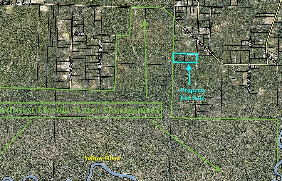 Looking for a getaway? This wooded 8.5 acres +/- is ideal for a weekend retreat, a hunter's camp or hiker's paradise! It's jjust off the paved road and borders the NW Florida Water Management District on the west side (see Document Section for info on use of District properties). 2 separate lots of record being sold together. Owner believes there were 2 mobile homes, with remnants still on the property. Electricity is run to both parcels. There are possibly septic tanks and well(s) on the property. Please verify all info as seller does not warrant condition of what improvements may still be there. Nap Knob Lane is not a county road nor is it maintained, it is an easement that runs south from Wilkerson Bluff Road to the south end. Owner is ordering a wetlands delineation as of 4-25-2024