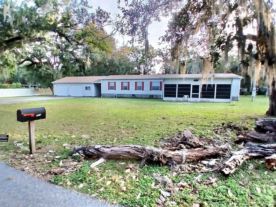 This is a grand opportunity to capture a wonderful property in a well sought after and popular area! a warm and cozy 4 bedroom 3 bathroom double wide mobile home beautifully maintained including a large kitchen, center island, veggie sink, ample storage in counterspace and cabinetry with a comfortable breakfast nook area to share delightful meals. A spacious living room will accommodate all gatherings creating the perfect oasis for friends and family while the screened in patio lets you savor a breath of fresh air and wonderful sunsets. The master bathroom is vast at 12.9' x 13' with dual sinks, jetted tub, separate shower, built in handles for leverage with dual closets in the master bedroom. On a great 0.29 acre lot, enjoy comfortability and an area to create an inspiring garden while indulging under the magnolia, oak, and scattered fruit trees around the property. This home also includes a covered wheelchair accessibility ramp, generous 2 car garage with workspace, washer, dryer hookup, laundry tub and washer heater. Inquire within for more astonsishing details!