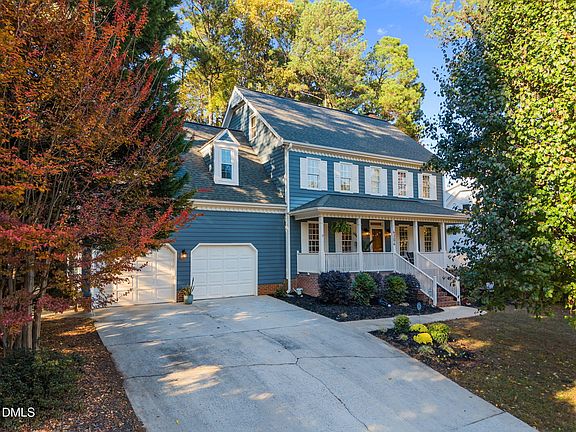 Located in a highly desirable North Raleigh neighborhood and school district, this home welcomes you with a full-width front porch that sets the tone—warm, inviting, and full of charm. Inside, beautiful hardwood floors extend from the foyer throughout the main level. The layout includes a formal living room (or home office) and a formal dining room. The spacious kitchen boasts granite countertops, upgraded stainless-steel appliances, walk-in pantry and a bright breakfast area overlooking the private backyard. The cozy family room features a gas fireplace and built-in shelving. Upstairs (accessible via a rear staircase as well) you'll find four generously sized bedrooms and a large bonus room. The primary suite offers two separate closets and an ensuite bathroom with a double vanity, walk-in shower, jetted tub, and private water closet. A spacious hall bath with a tub/shower combo and double vanity, along with a huge laundry room, complete the second floor. The third floor includes a walk-up attic with excellent potential to finish and add additional square footage. The oversized two-car garage features extra pull-down storage. Step outside to a large back deck overlooking a fenced backyard—ideal for entertaining, relaxing, or enjoying the outdoors in complete privacy. Location convenient to Lake Lynn, shopping, dining with easy access to 540, 440, RDU and RTP!