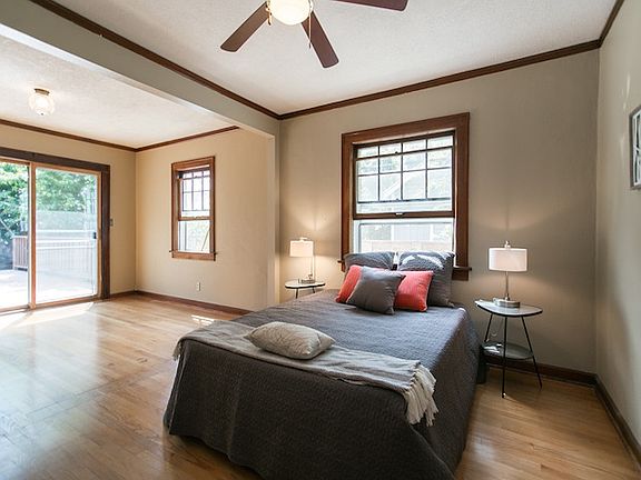 Spacious bungalow w/vintage charm on corner lot. Property features hardwoods throughout, built-ins & Tudor-style fireplace. Generous master on main w/outside access to large deck, perfect for entertaining. Recent kitchen + bath updates & new interior paint. New roof & sewer replacement 2010. Fully fenced yard. Located across from Kailash Eco Village in desirable Creston neighborhood. Walk/bike to some of the best Portland has to offer!