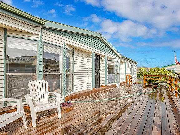 Impeccably kept home in one of the nicest 55+ parks in Forest Grove. This home is conveniently located on the green belt and is just steps to the community center. The layout of the home is ideal with two bedrooms on one end next to the living room, and the primary suite next to the family room on the other end. The home has been updated with luxury vinyl floors in the kitchen and laundry room, and all new skylights. Home was re-piped in 2009. Water heater one year old. Laundry room with included washer and dryer has an exterior door with nice utility sink. Enjoy the sunny 12x36' deck outside the living room. There's plenty of storage in the large 208 sq. ft. shed conveniently located just outside the utility room door. Move right in and start enjoying your life at Homestead!