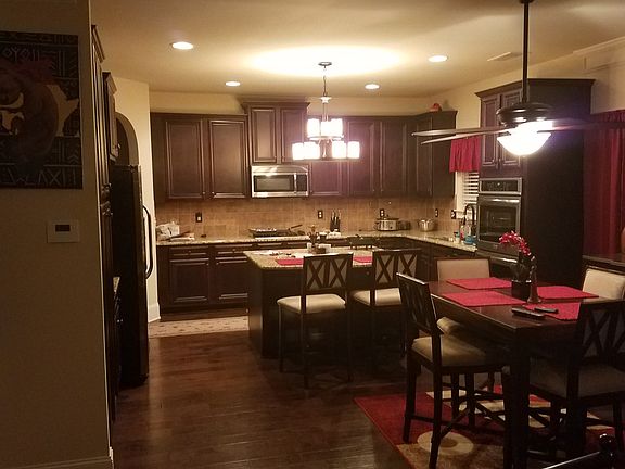 This home is a must see. Tons of upgrades. Custom granite countertops, large island stove top, upgraded sink fixtures, upgraded door fixtures, upgraded light fixtures, upgraded ceiling fans, upgraded patio w/ french doors that lead out to a private backyard w/ a covered outdoor Tiki Bar. Rock firepit, new hardwood floors on the main, his and her walk in closet, custom showerhead, upgraded door entry lock, and much more. 2 HOA swimming pool, single tennis court, and a walk/bike private trail. Set up a preview today!!!!