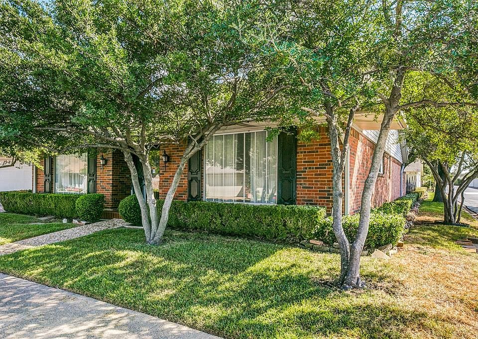 Located near 635 and the Dallas North Tollway this townhouse is a rare find. Boasting a generously sized master suite with separate vanities and a spacious walk-in closet. The two guest bedrooms have en suite bathrooms. This home has a large living area just off the kitchen, with vaulted ceilings, a built in wet bar and fireplace. The backyard has a covered patio that backs up to a beautiful gated greenbelt. The HOA manages the lawn maintenance, common space and community pool.